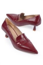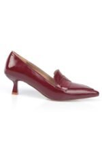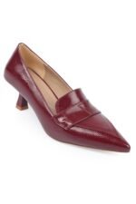 H4120 נעל בורדו עקב כסף מלבן גבוה